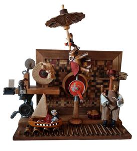 2024Een miniatuur Vikingschip, opgebouwd uit gevonden houten voorwerpen en materialen.