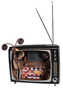 2023Een nostalgische assemblage in een oude televisie, waarin verleden en verbeelding elkaar ontmoeten.